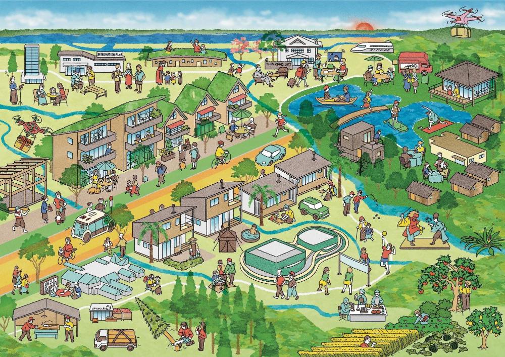 この未来予想図は、バックキャスティングの手法による「未来へのメッセージ」であり、ストーリーテリング(物語による伝達)を重視しています。
